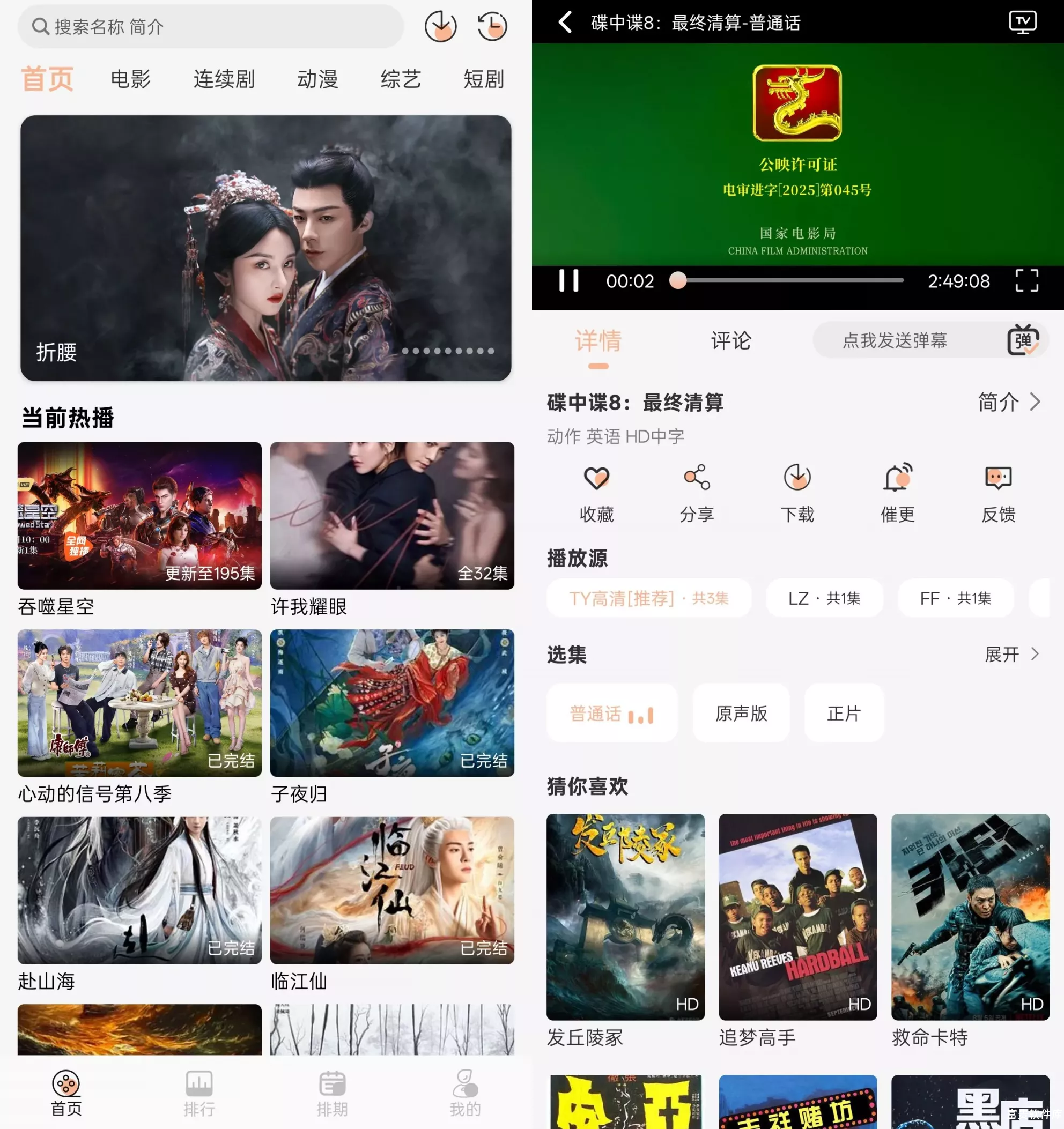猫放时光是一款集电影、电视剧、动漫、综艺、短剧等多品类内容于一体的视频流媒体应用。以"全网新剧独播"为核心特色,提供最新影视作品,包含《吞噬星空》《心动的信号第八季》《碟中谍8:最终清算》等热门IP,满足用户对影视娱乐的全方位需求。